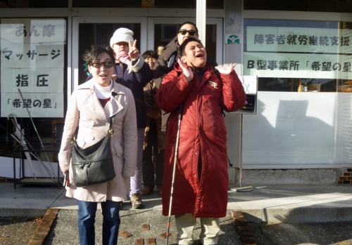 *11月1日(日)に行われた「石巻アートツアー」が行われ、視覚障害者7名、晴眼者13名が参加しました。天気も良く、仙台から仙石・東北ラインの電車に乗り石巻へ向かいました。その時のツアーの様子の写真と参加者の感想を、晴眼者のS・Sさんと視覚障害者のI・Mさんのお二人に書いて頂きました。